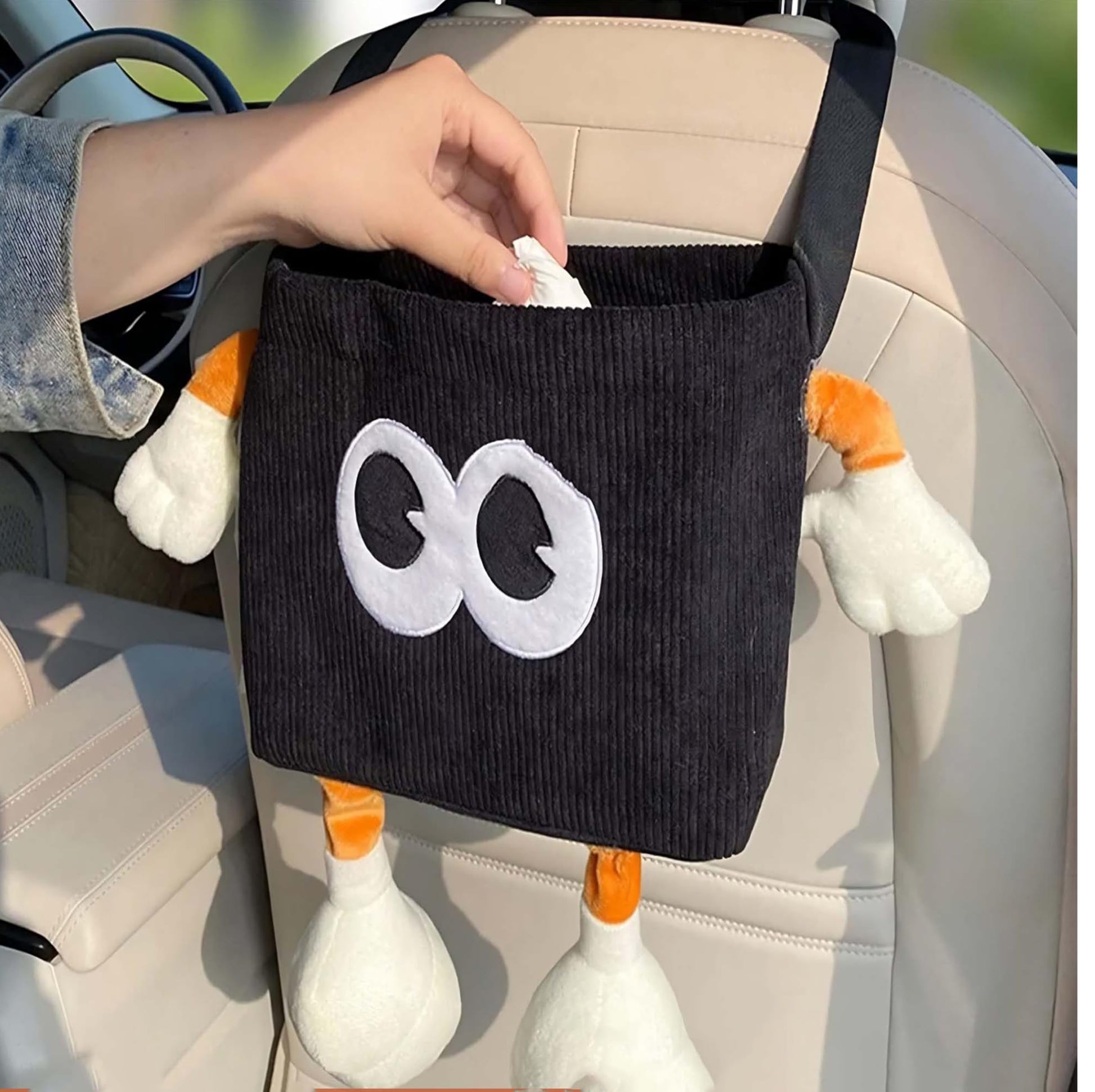 Keep your car clean, stylish, and clutter-free with this multifunctional plush car organizer—a charming tissue holder and trash bin in one! Designed with a playful cartoon-inspired look, complete with cute arms and legs, it adds a fun touch to your car while keeping essentials within reach.