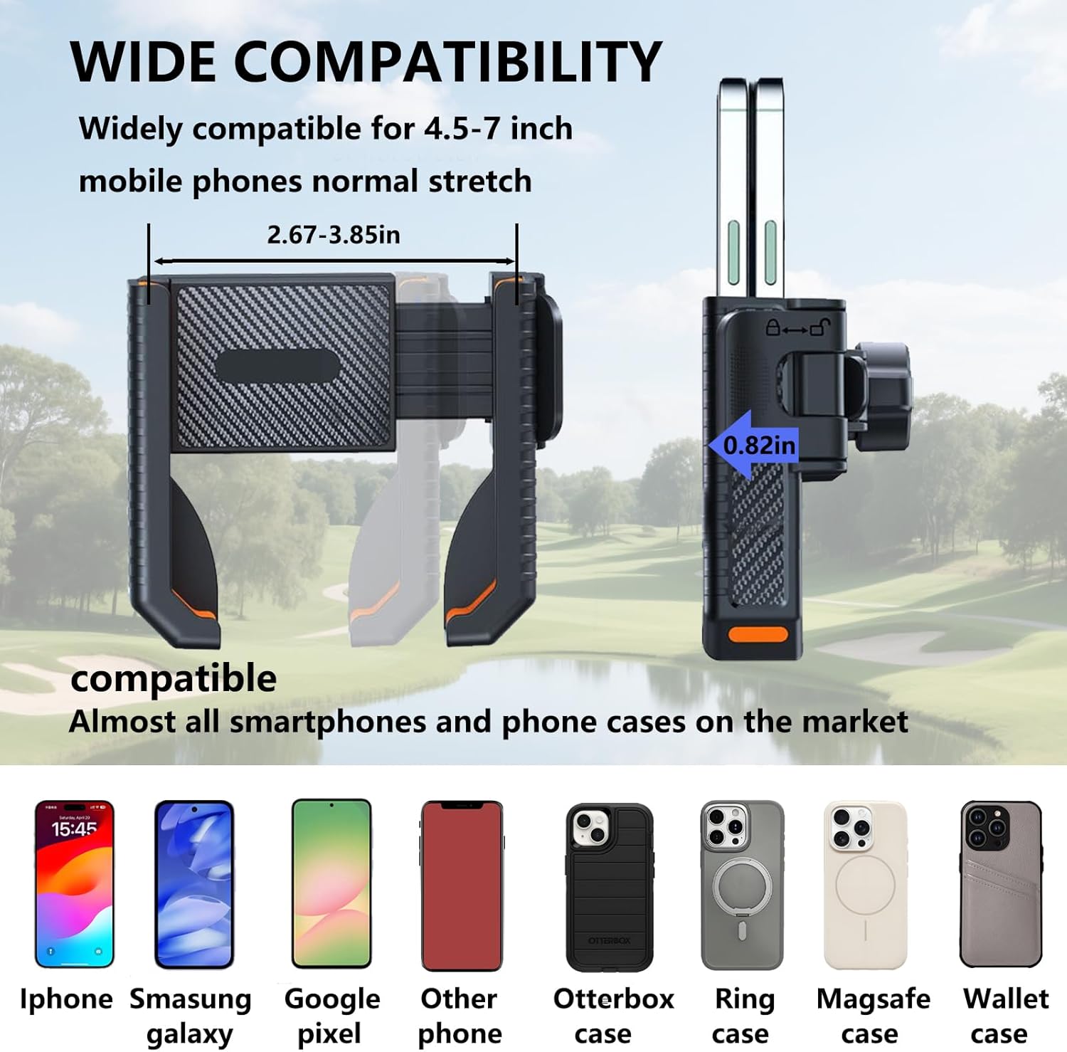 Holds phones rock-solid even on rough fairways or off-road trails