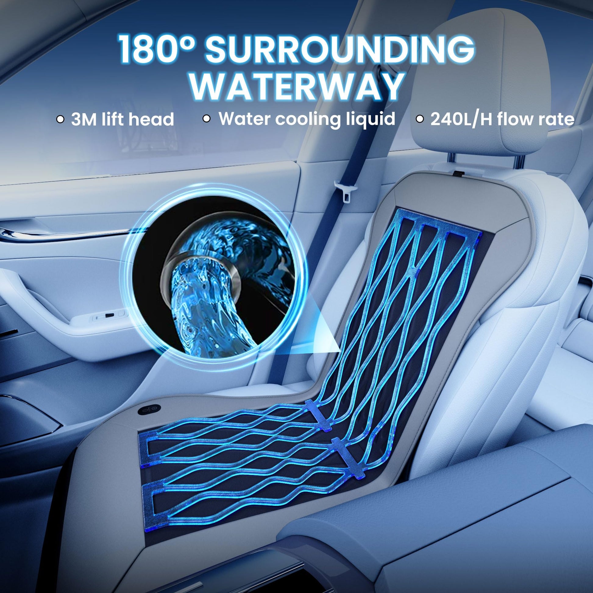 Our cooling car seat cover utilizes high-performance semiconductor cooling chips, leveraging the Peltier effect for active and efficient cooling. This innovative technology lowers seat temperatures by 10–15°C below ambient temperature. The integrated 180° surrounding waterway and radiator ensure stable, continuous cooling performance. In contrast, traditional fan-based cooling cushions rely solely on air circulation, offering only passive cooling with limited effectiveness—often blowing hot air in high-temperature conditions.