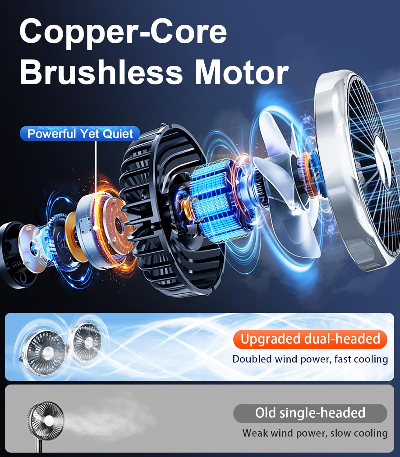 Engineered with advanced 5-blade vortex technology, our dual-head fan delivers a stronger, steadier stream of cool air. The brushless motor and 100% pure copper spindle ensure powerful, consistent performance with whisper-quiet operation—perfect for long summer drives.