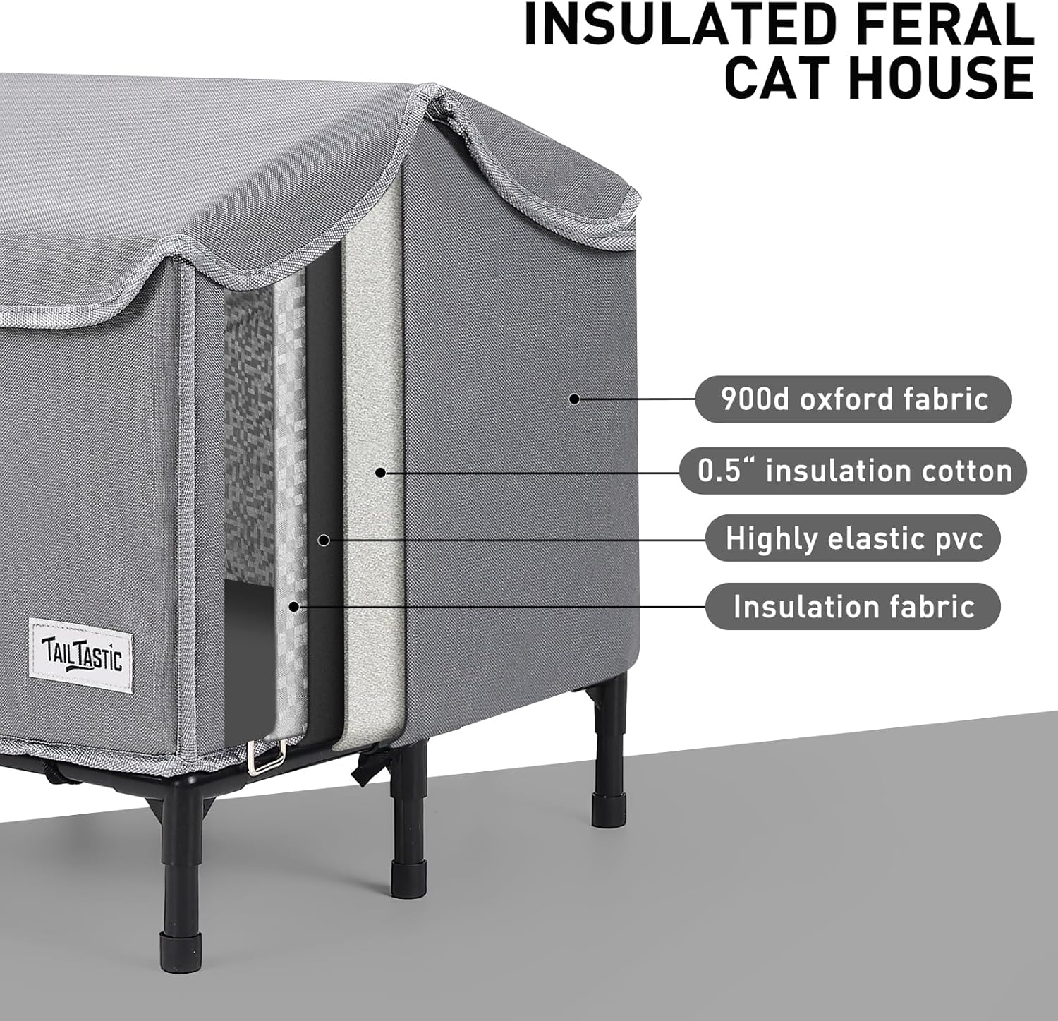 Detachable Elevated Stand for Extra Protection The raised base lifts the house off damp ground, preventing cold transfer and adding stability. It’s easily removable if preferred ground-level. This outside cat house weatherproof feature helps avoid water pooling and adds longevity to the shelter