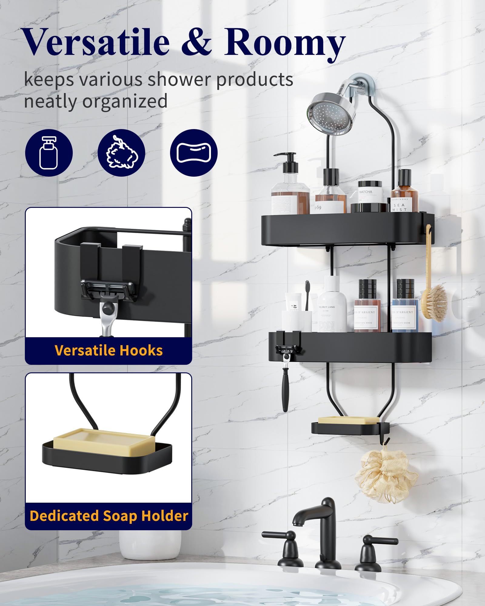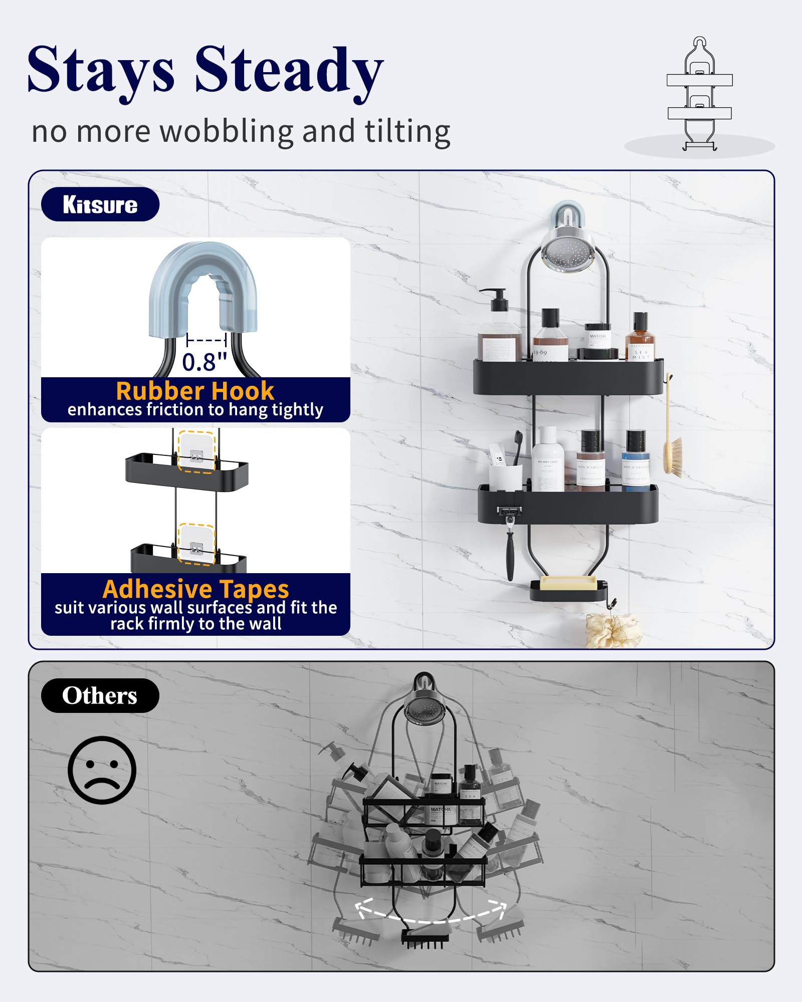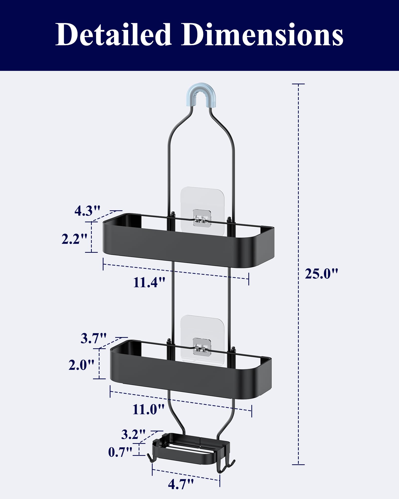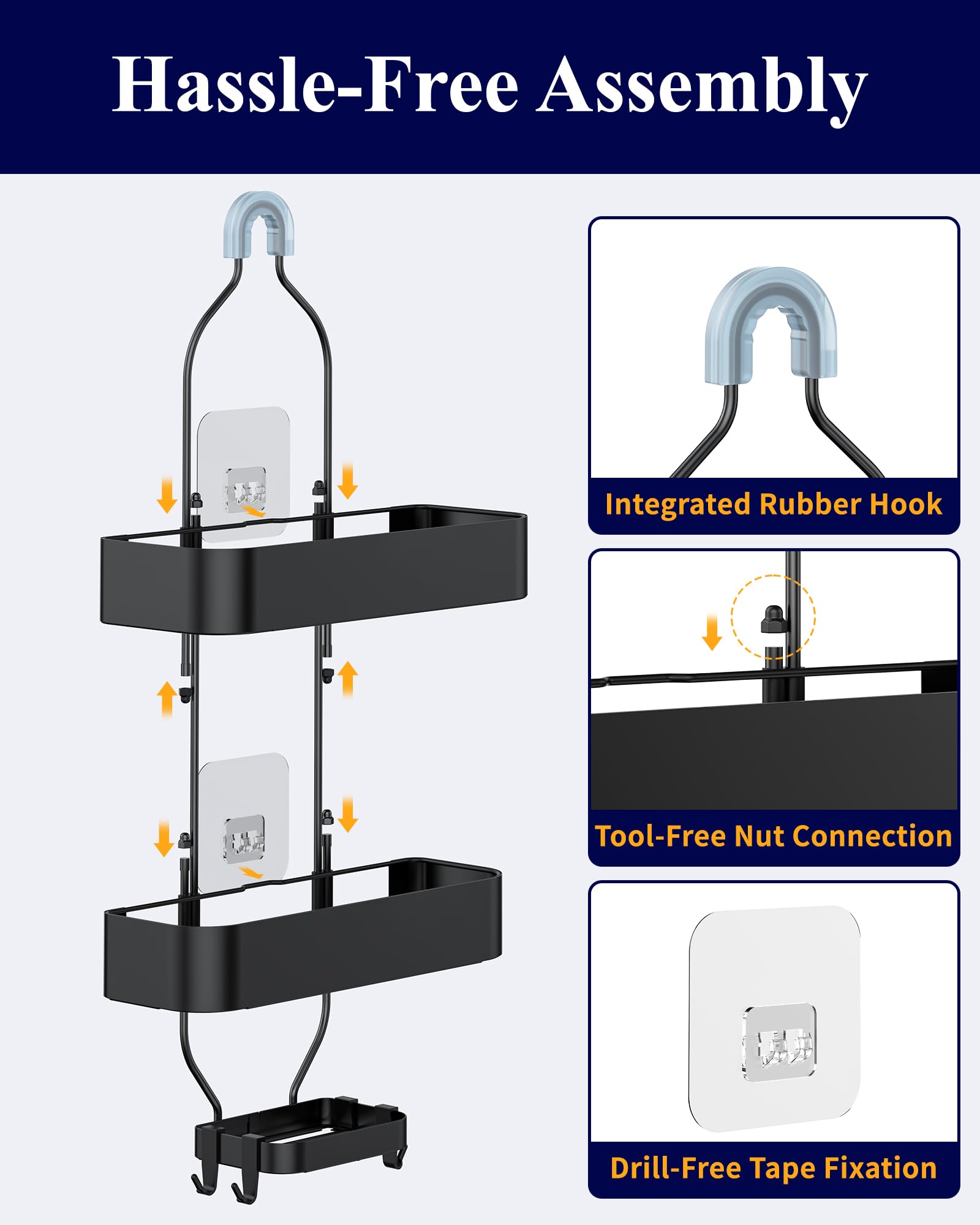 Drill-Free Installation in Minutes: Achieve a perfectly organized shower without any permanent alterations. Designed for absolute convenience, this rack requires no tools or drilling. Simply assemble it with the provided nuts, hang it over your showerhead, and apply the adhesive strips for wall support. It’s the ideal, damage-free solution for renters and anyone seeking an instant bathroom upgrade.