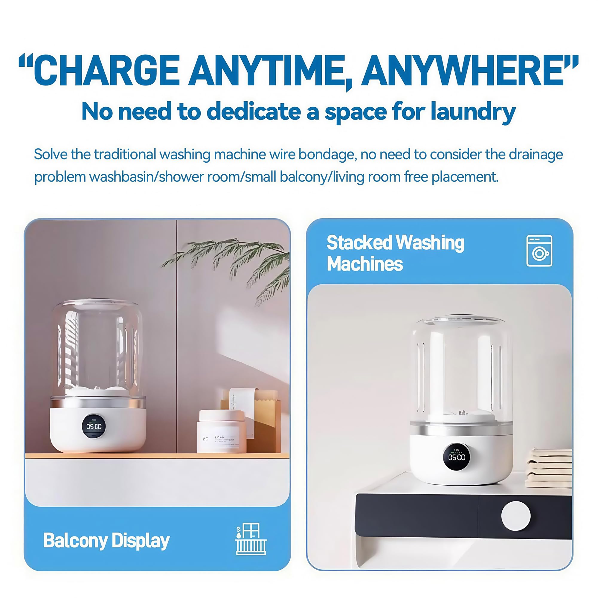 Engineered with an industrial-grade 4000mAh battery (IPX6 waterproof), it delivers 20 cycles per charge—3X more than average portable washers. Ideal for dorm rooms, RV trips, or camping where outlets are scarce. Charges fully in 2hrs via USB-C (adapter included).