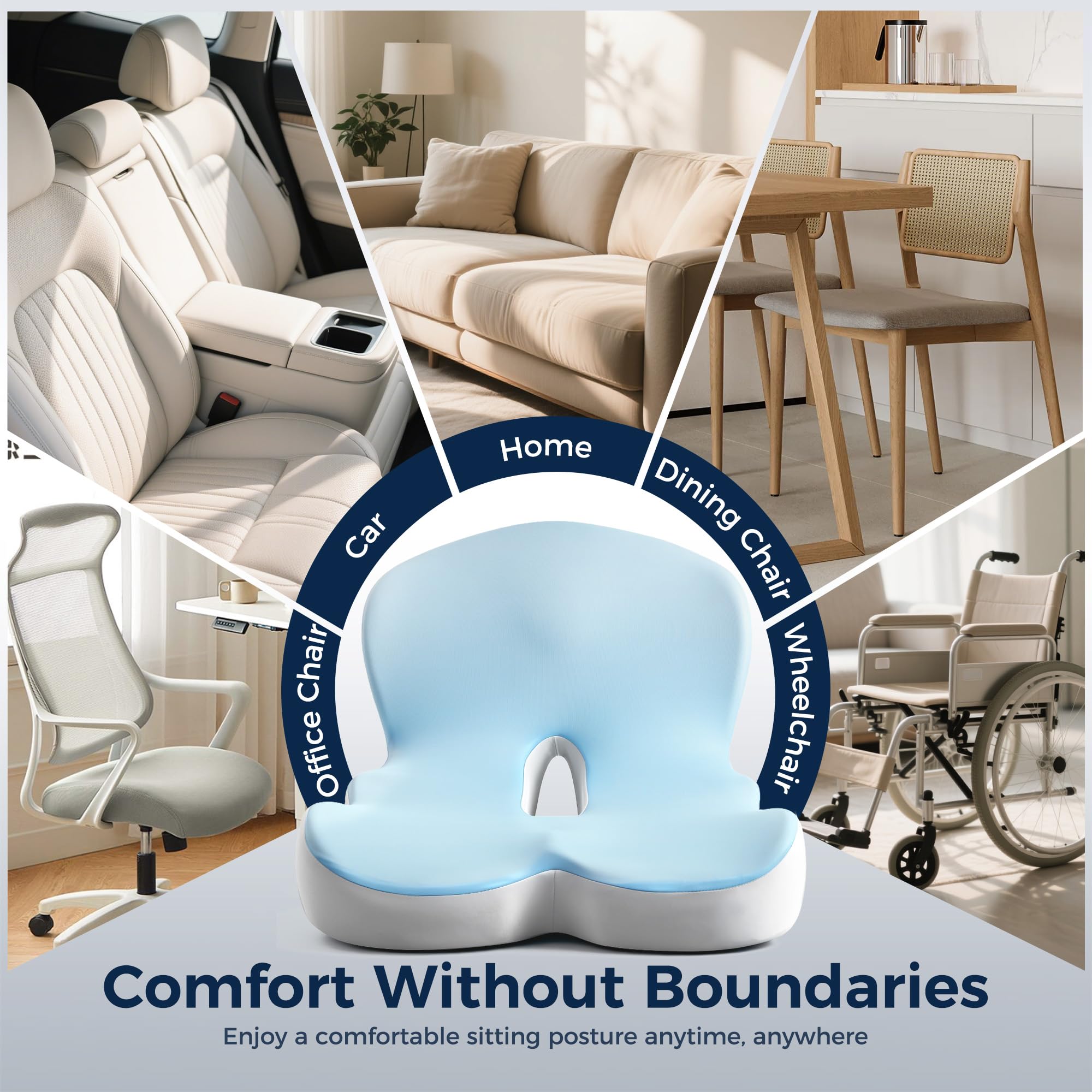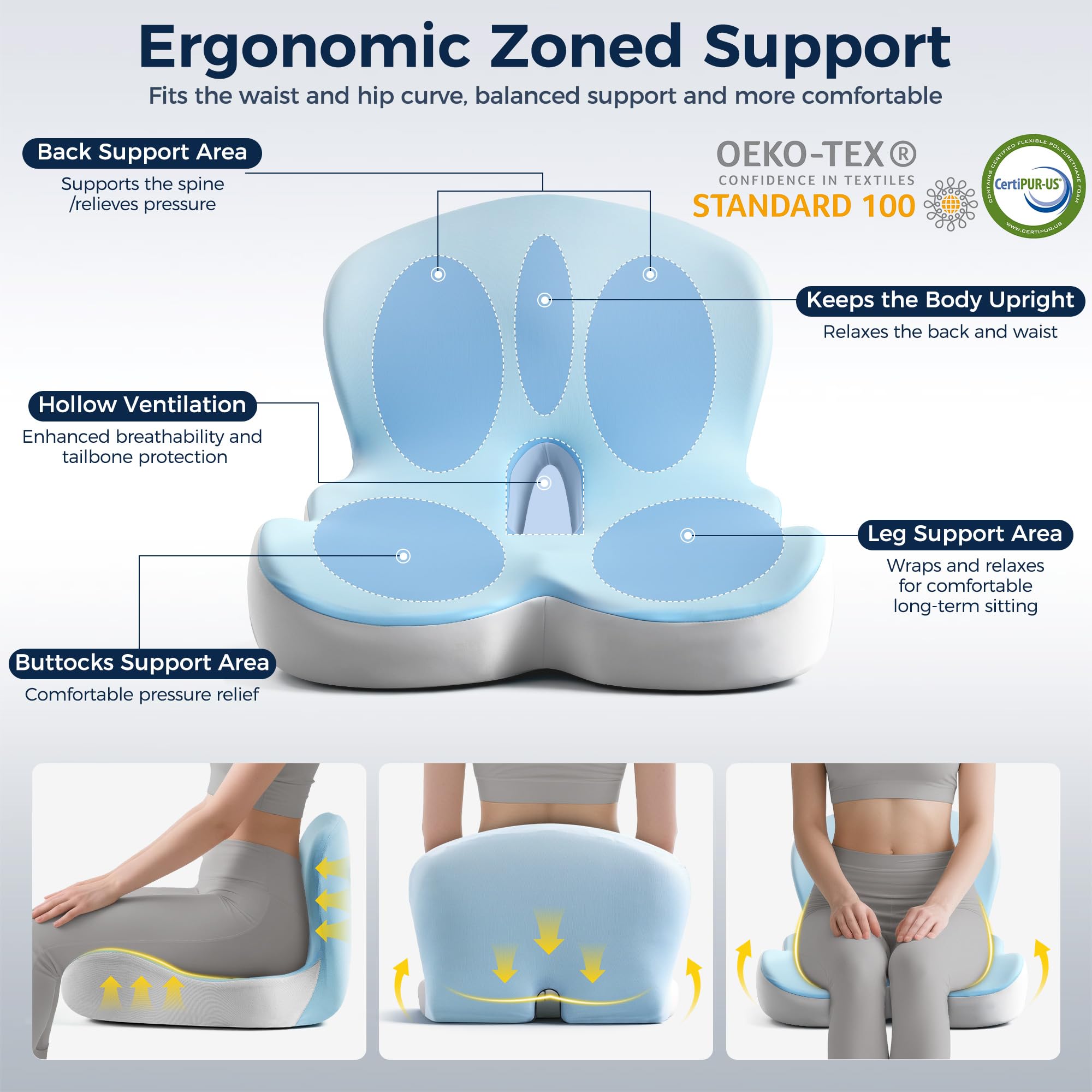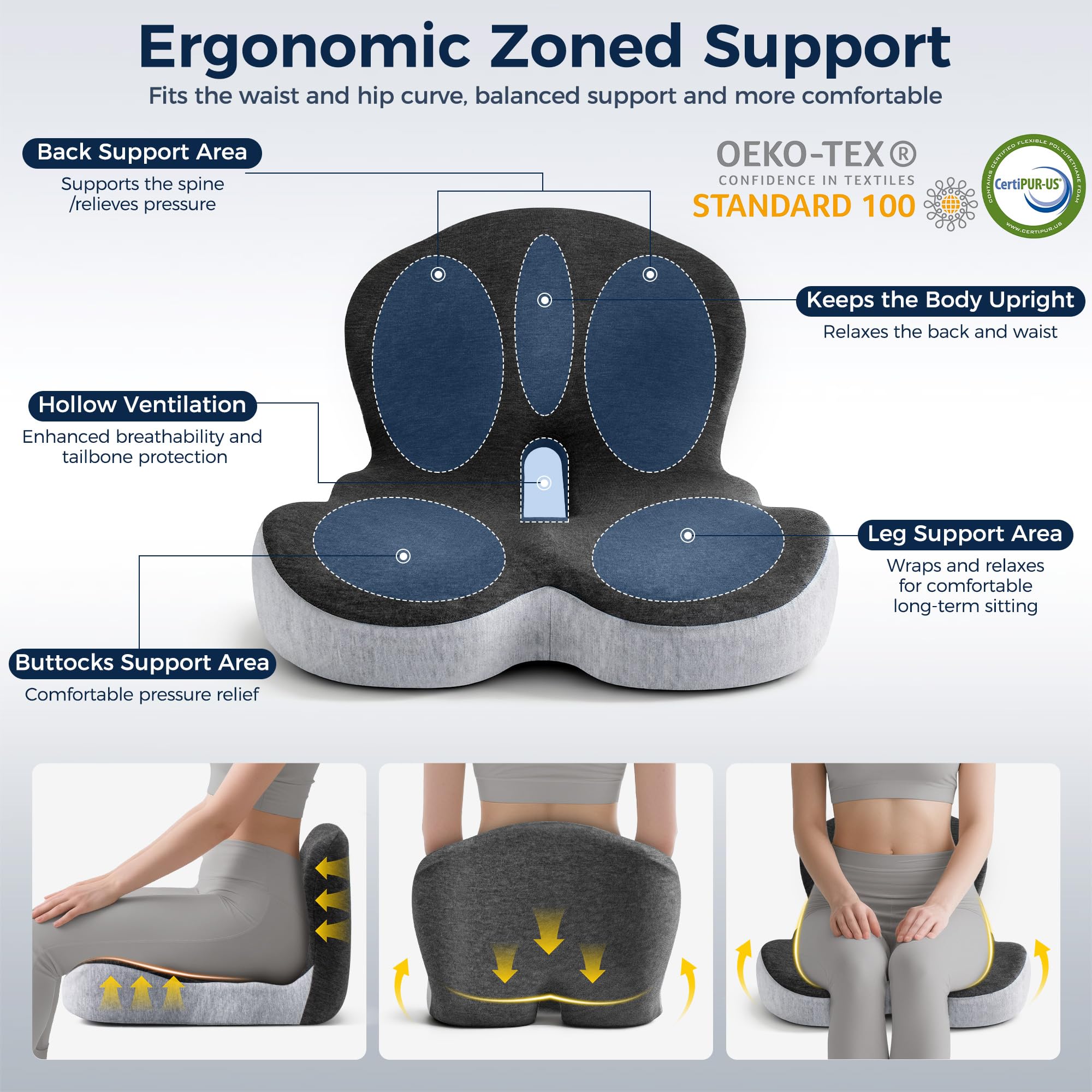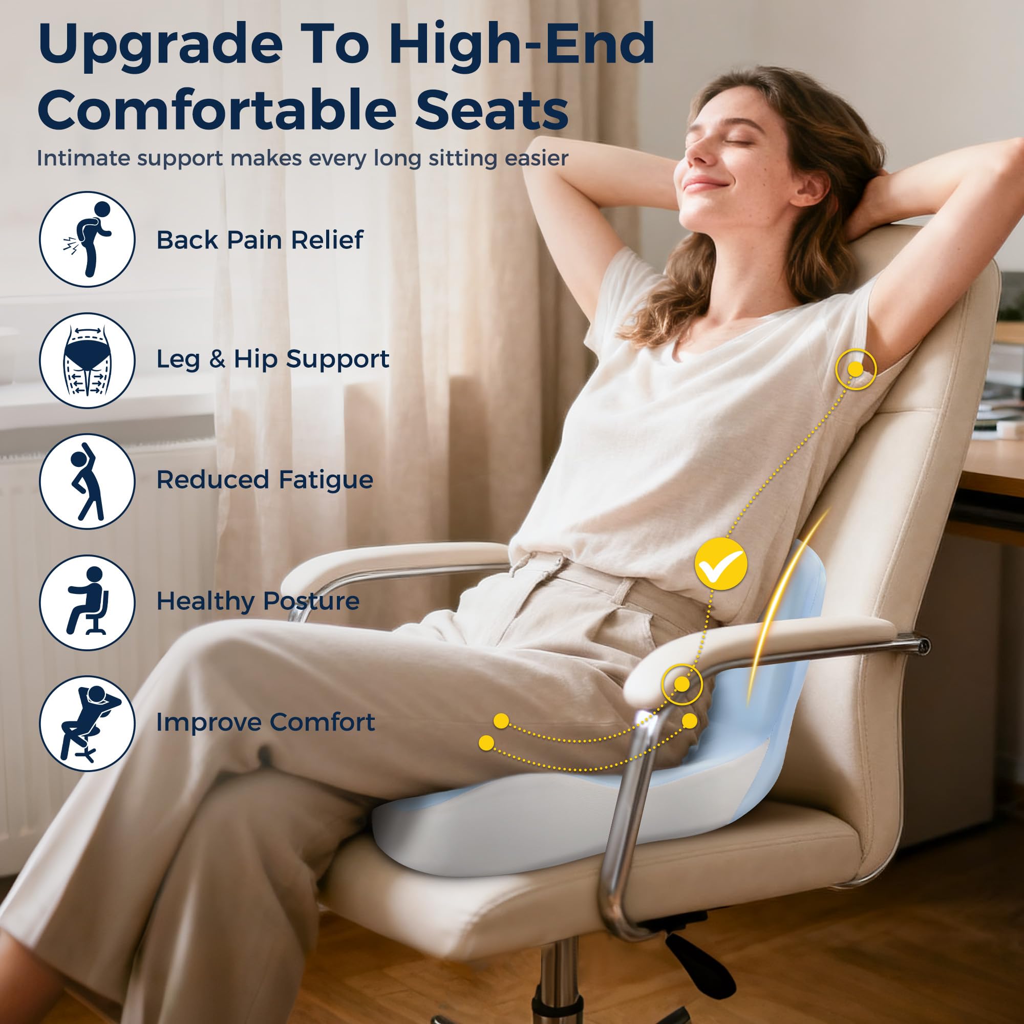 【Ergonomic One-Piece Design】:This L-shaped seat cushion is an integrated chair cushion that perfectly fits the natural curve of your spine, providing firm lumbar and hip support. Our office chair cushion encourages a healthy S-shaped posture, and reduces discomfort from long sitting sessions.