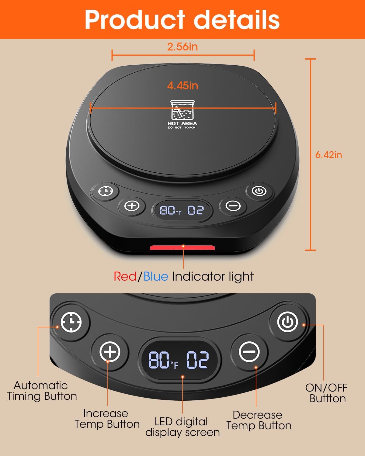 • 【Note】The temperature setting is for the panel surface. Due to room temperature variations and heat loss, the actual temperature inside the Jar may fluctuate by 3–5°F. It is recommended to use a thermometer for calibration during initial use. At low settings (75°F), the panel may not feel hot but is still working — gently touch the center to test. At high settings (above 80°F), DO NOT touch the panel.