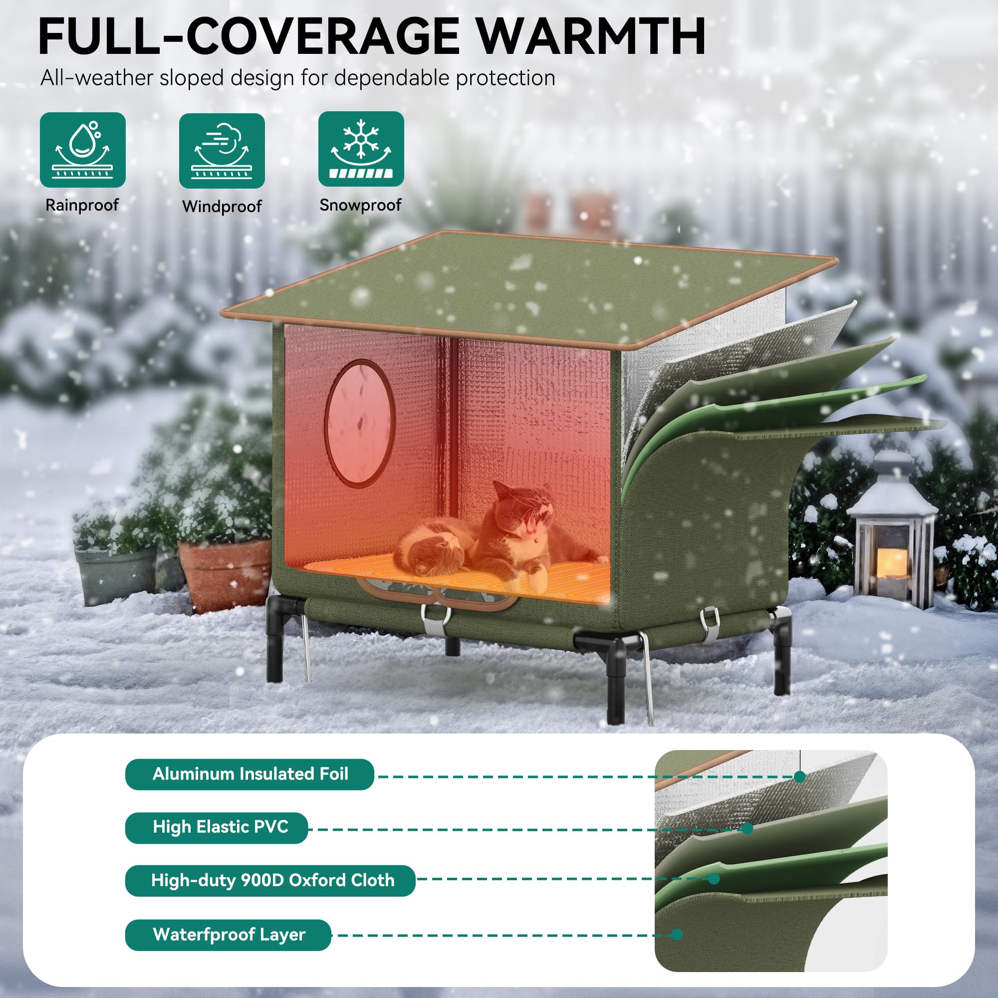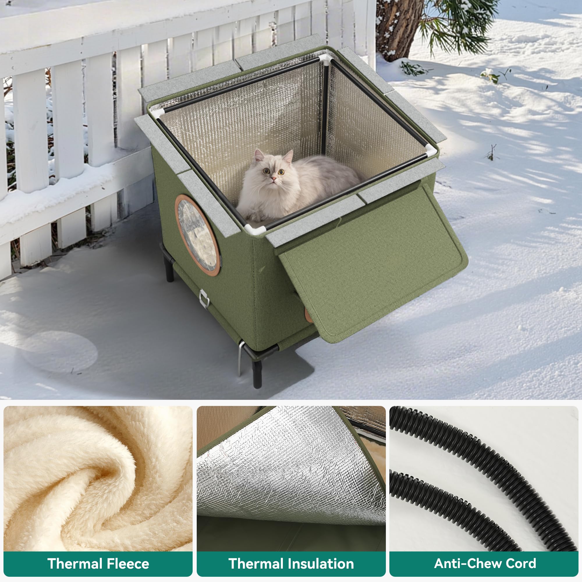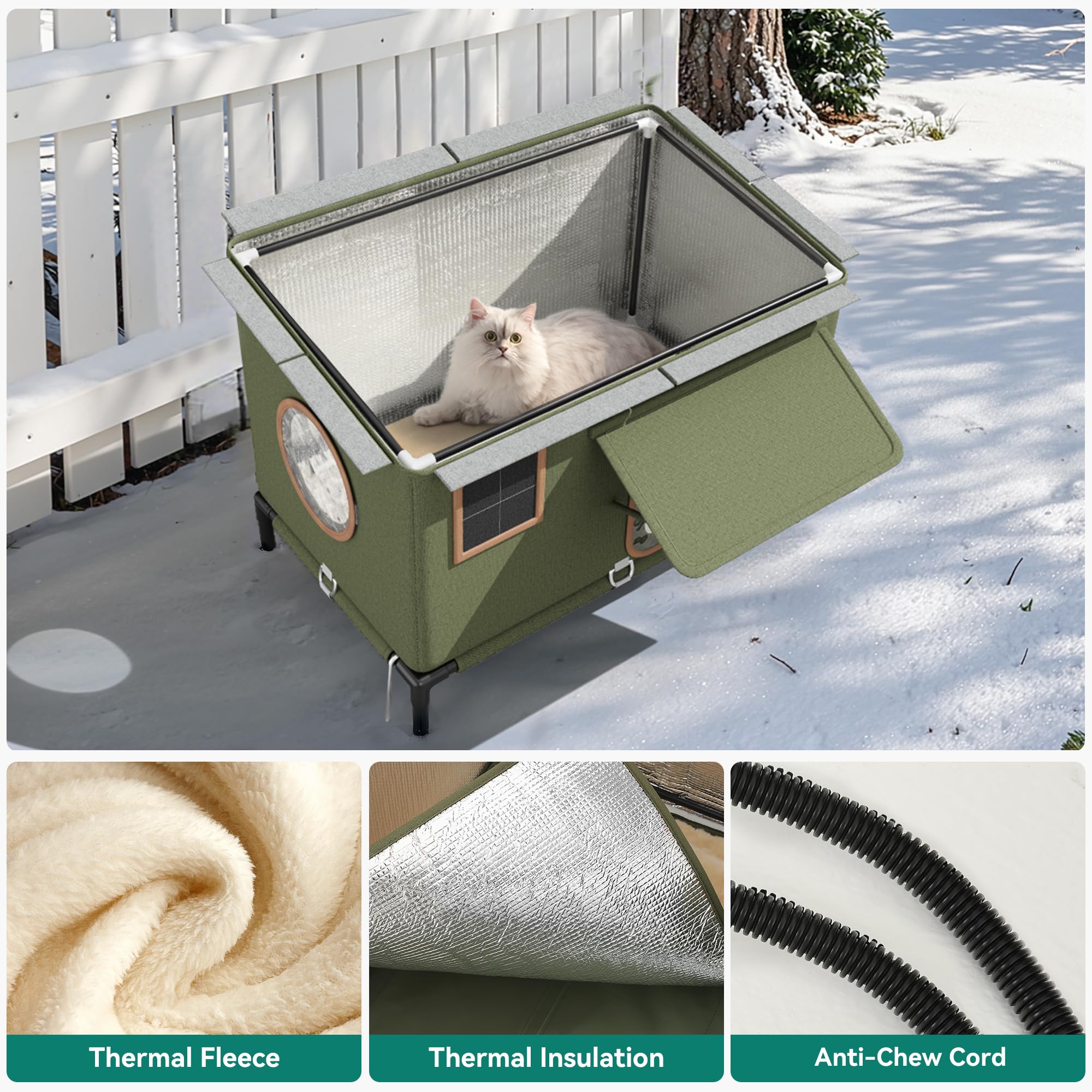 Effortless Maintenance & All-Season Use: We've designed this shelter for easy care with a fully detachable roof, making cleaning quick and simple. When temperatures rise, just remove the heating pad to transform it into a cool, comfortable, all-season outdoor retreat that cats will adore year-round.