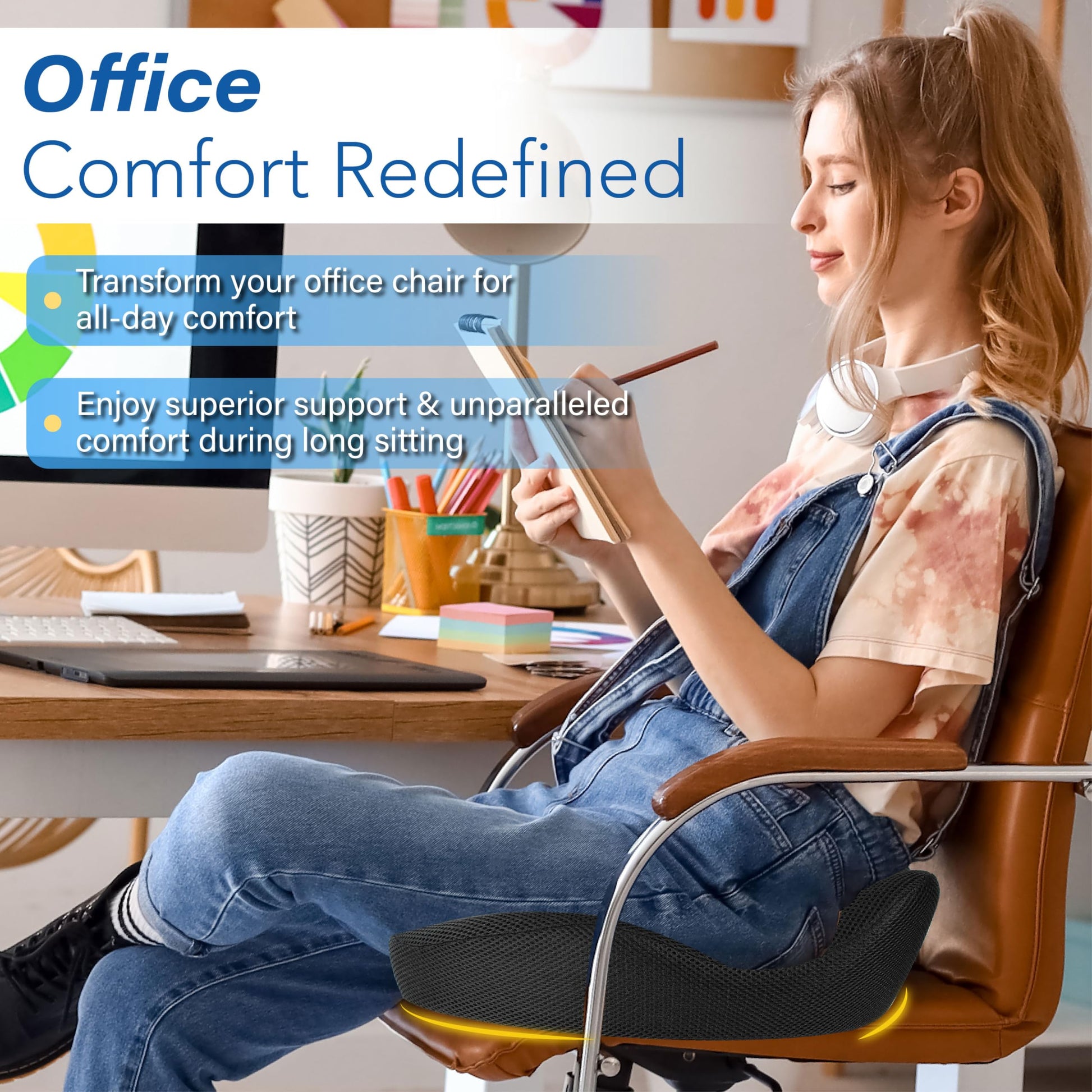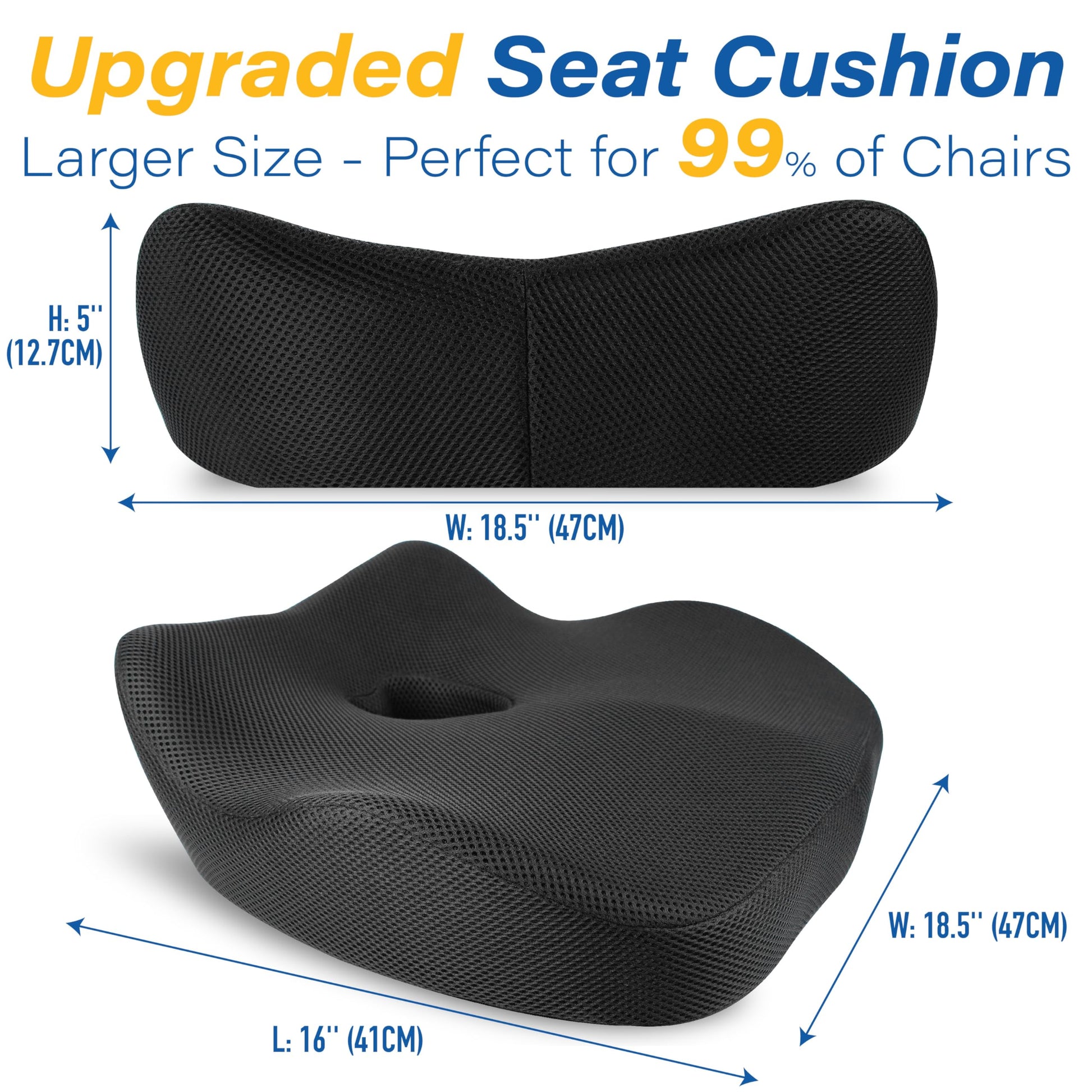 Thick Cushion for Pain Relief – The larger design provides broader support, while the thicker construction ensures even weight distribution. This multifunctional seat cushion effectively alleviates discomfort in the lower back, sciatic nerve, coccyx, and tailbone.